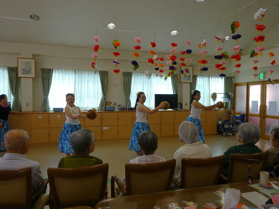 フラダンス♪Toru Matsushita2019年7月6日読了時間: 1分 7月4日にフラダンスのボランティアの方々が来所され、素敵なダンスを披露してくださいました♪ご利用者の方々のかで初めてフラダンスを見る方が3名おられ、喜んで見ておられました!(^^)!何回か衣装替えがあったり、楽器を使いながら踊っていたり♡とても楽しい時間になりました。ありがとうがざいました